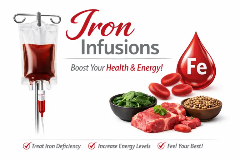 Iron infusions are an effective treatment for iron deficiency and iron deficiency anaemia when oral supplements are not enough or not well tolerated. By delivering iron directly into the bloodstream, this therapy helps restore healthy iron levels more quickly, supporting the production of red blood cells and improving oxygen delivery throughout the body. Patients often notice increased energy, improved concentration, reduced shortness of breath, and better overall wellbeing. Our experienced medical team provides iron infusions in a safe, comfortable clinical setting, with careful monitoring throughout the process. If you’re experiencing fatigue or low iron levels, we’re here to help.